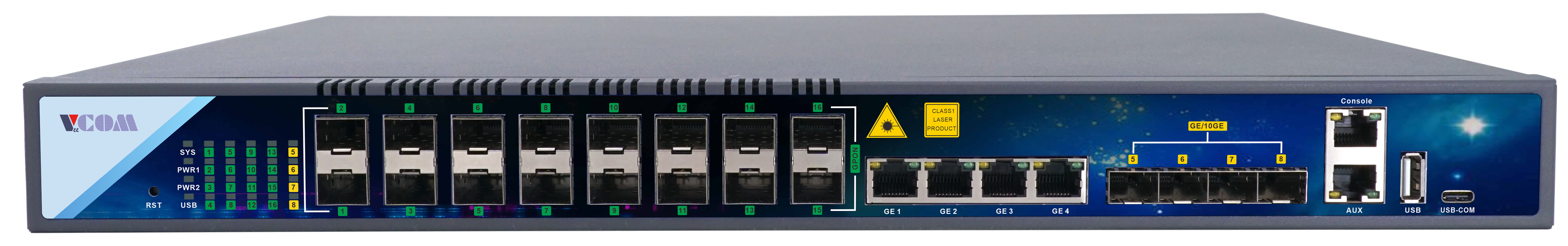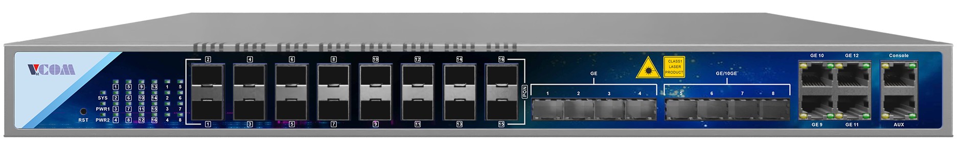 The VC-GP8816 is a pizza-box GPON OLT with 16 GPON ports that meets flexible and fast FTTx access, suiting the scenarios such as sparse/ remote/cost-sensitive area,smart industrial park, commercial b......